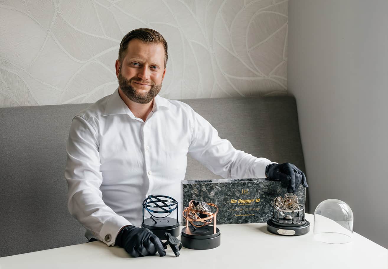 Later came the Rotorique cufflinks, featuring visible automatic movements that bring the soul of horology into everyday wear. Soon, Orbitron, a kinetic sculpture, will further explore the balance between engineering and art.